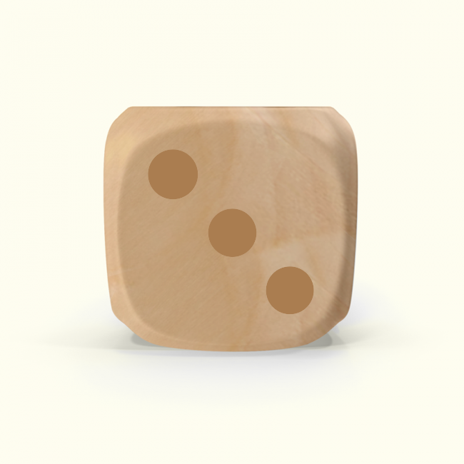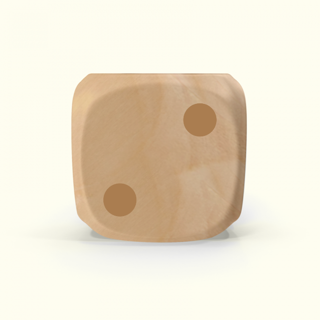 Dado Mokko D6 con puntos tamaño mini esquina redondeada madera claro