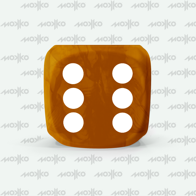 Dado Mokko D6 con puntos tamaño estándar esquina redondeada efecto mármol caramelo