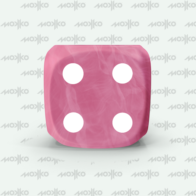 Dado Mokko D6 con puntos tamaño estándar esquina redondeada efecto mármol rosa chicle