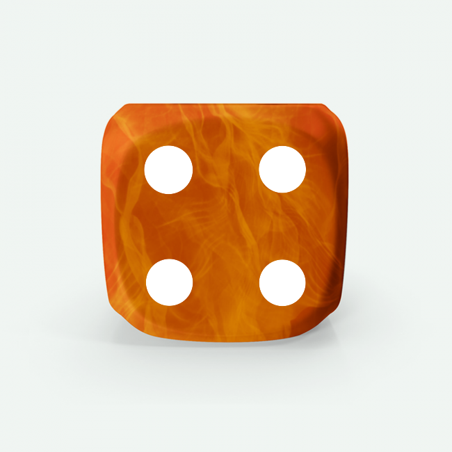 - Peculiaridades en los detalles: Es posible que se presenten ligeras variaciones en los puntos numéricos, grabados o en la pintura final de los detalles de los dados. Algunas variaciones mínimas pueden surgir debido a la manipulación durante el proceso de personalización. También puede observarse un halo, efecto difuminado o rebabas alrededor del grabado (ya sea logotipo, puntos, números o iconos) causado por el calor del láser al interactuar con ciertos materiales del dado. Adicionalmente, pueden aparecer pequeños roces o ralladuras, especialmente visibles en dados con efecto gema, debido a su acabado más brillante y translúcido. La pintura aplicada en los grabados puede presentar desvanecimientos según el color base del dado, y es posible que se observe falta de cobertura, en especial en colores de pintura de tonalidades claras como amarillos, amarillo verdoso o naranjas. En algunos casos, pueden producirse cambios en la disposición de números, logotipos, iconos o textos, que pueden diferir de lo mostrado en el personalizador, debido a ajustes técnicos necesarios en el proceso de producción.