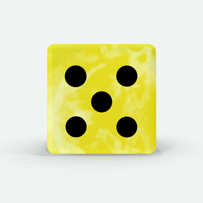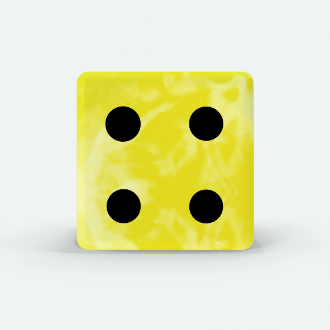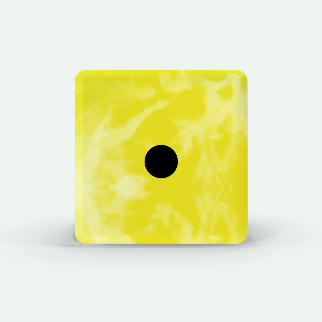 Dado Mokko D6 con puntos tamaño estándar esquina recta efecto mármol amarillo limón