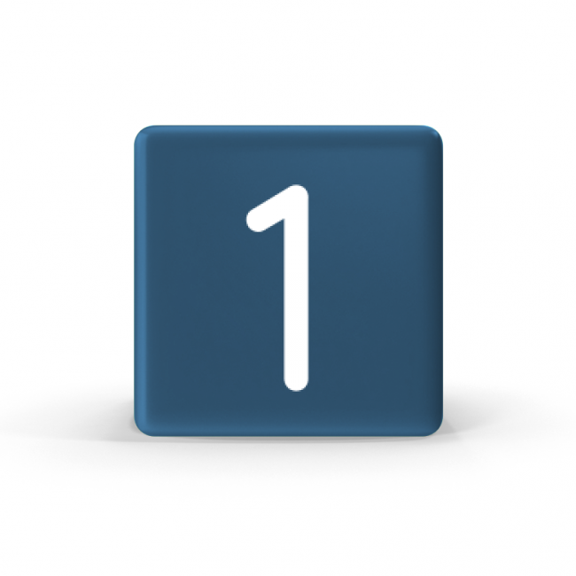 Dado Mokko D6 con números tamaño estándar esquina recta color sólido azul medio