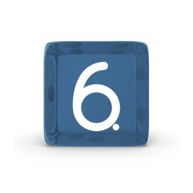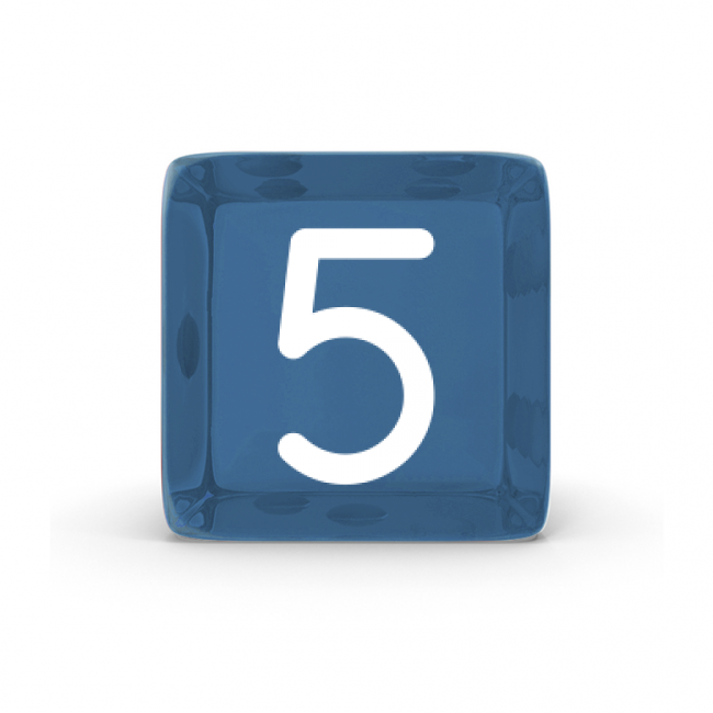 Dado Mokko D6 con números tamaño estándar esquina recta efecto gema azul