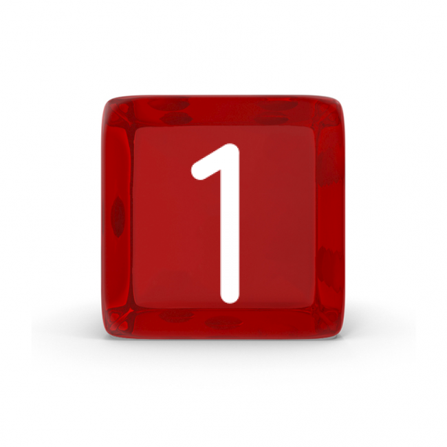 Dado Mokko D6 con números tamaño estándar esquina recta efecto gema rojo