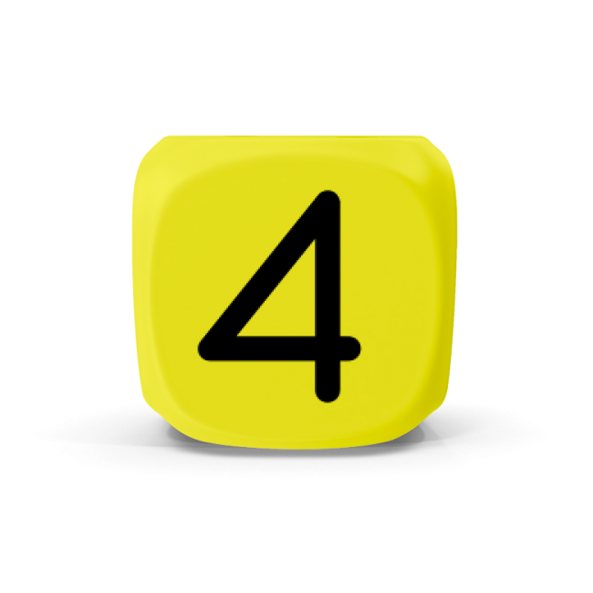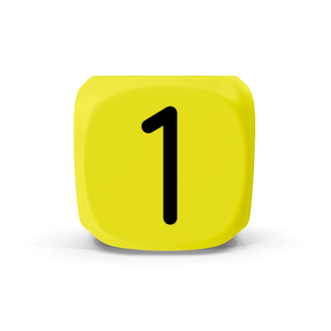 Dado Mokko D6 con números tamaño estándar esquina redondeada color sólido amarillo limón