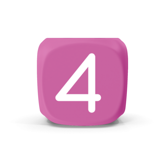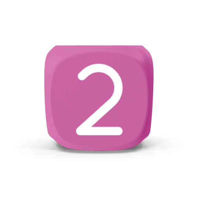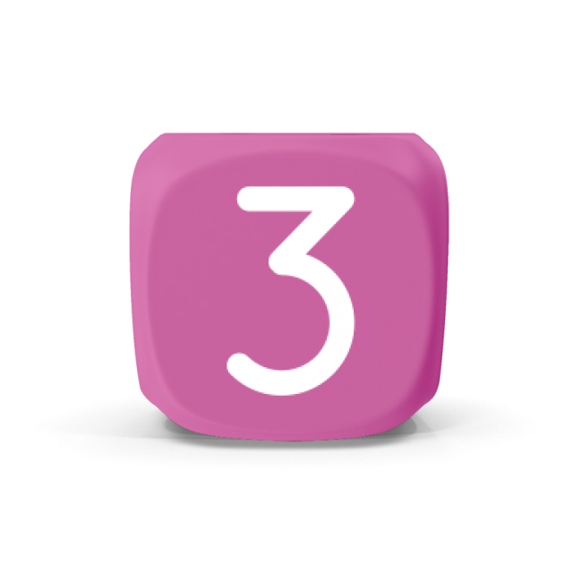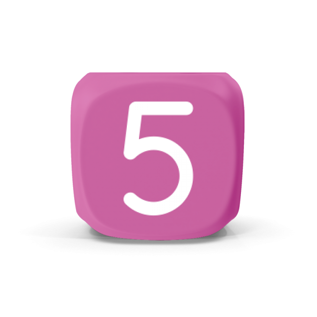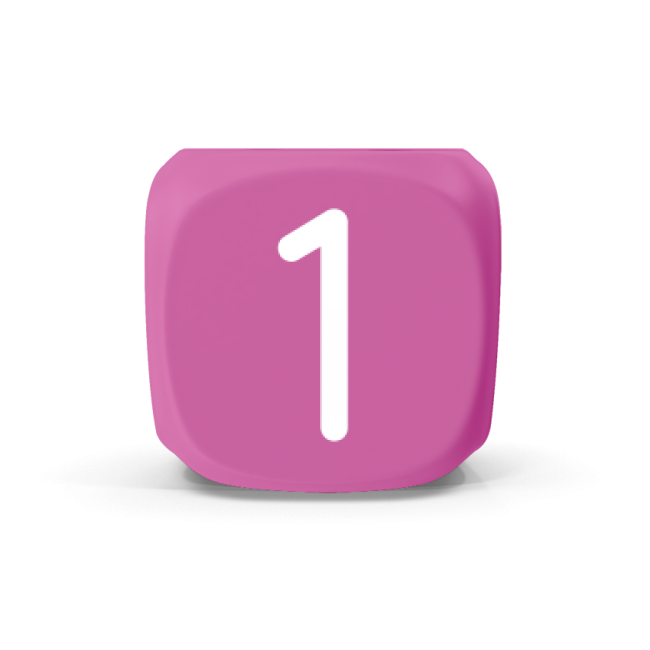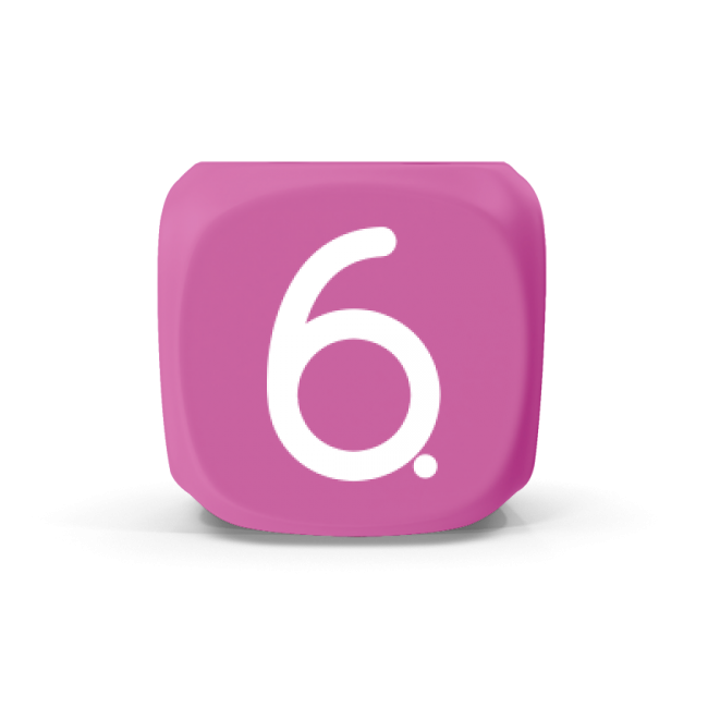 Dado Mokko D6 con números tamaño estándar esquina redondeada color sólido rosa