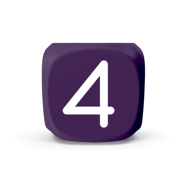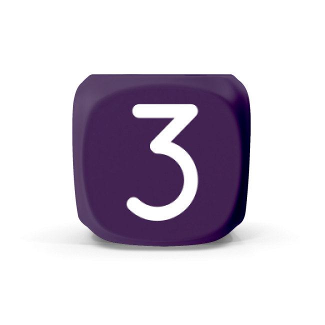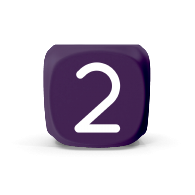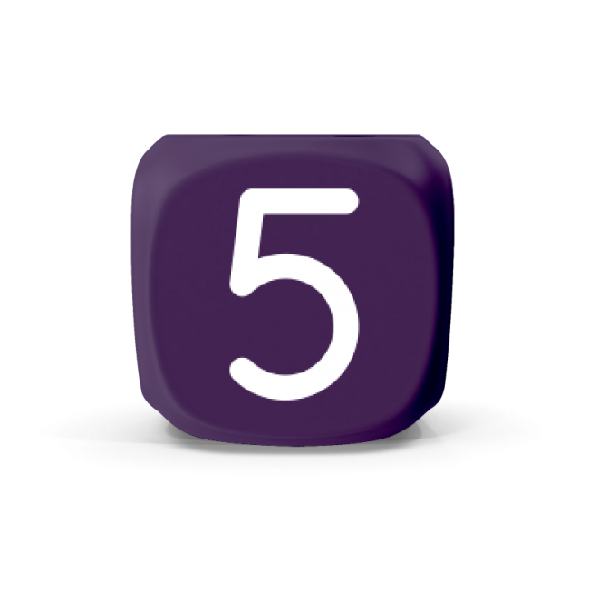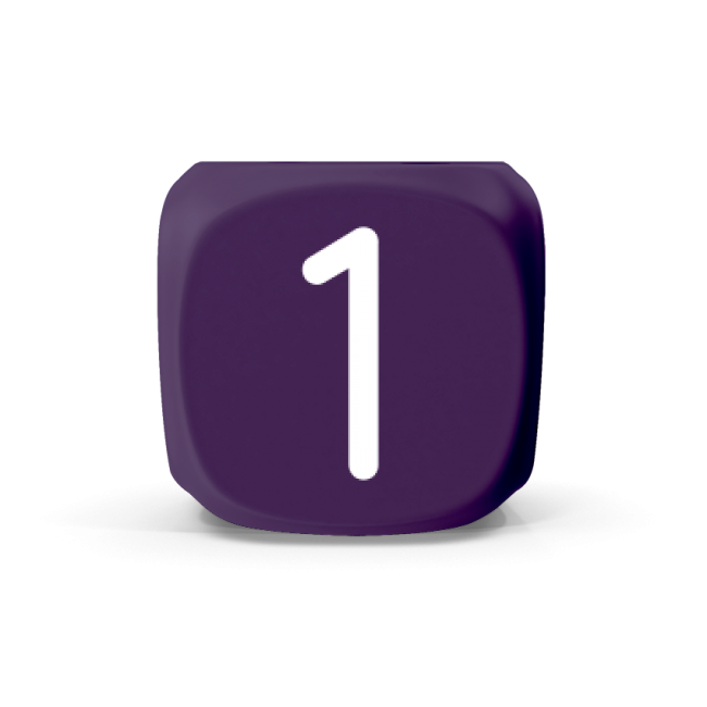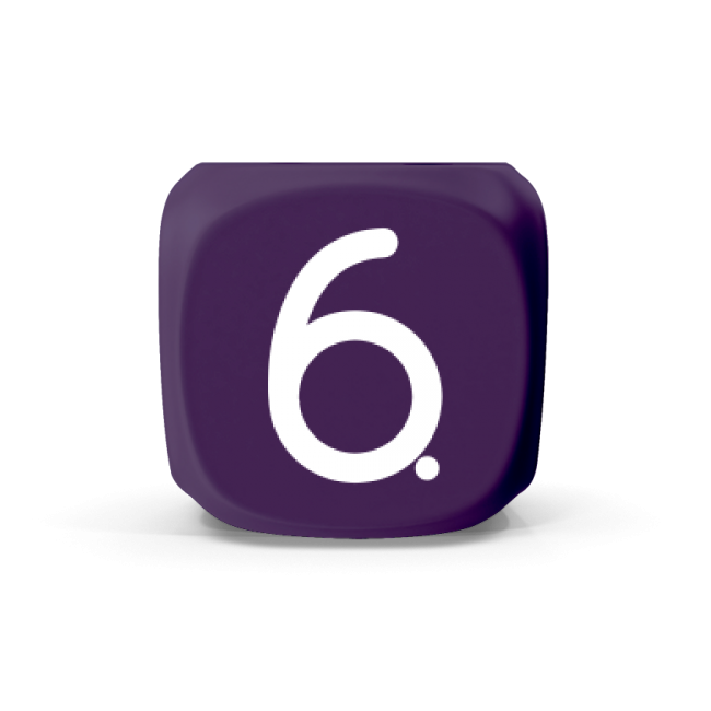 Dado Mokko D6 con números tamaño estándar esquina redondeada color sólido violeta
