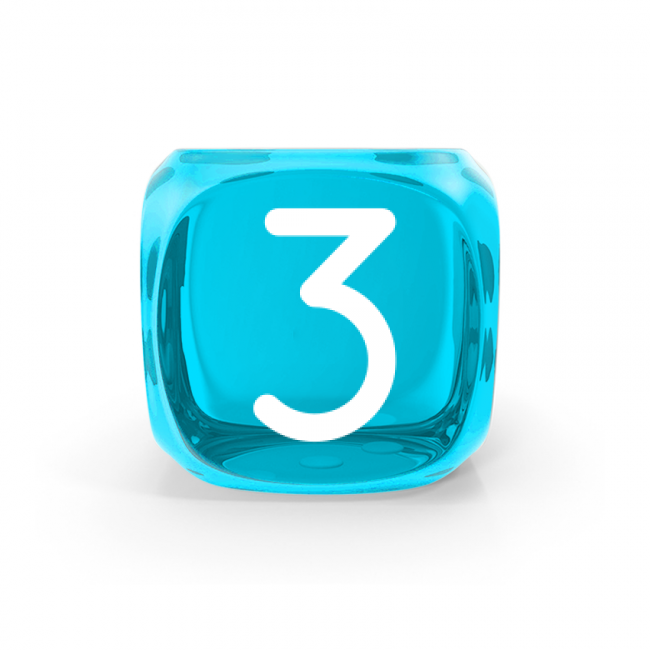 - Peculiaridades en los detalles: Es posible que se presenten ligeras variaciones en los puntos numéricos, grabados o en la pintura final de los detalles de los dados. Algunas variaciones mínimas pueden surgir debido a la manipulación durante el proceso de personalización. También puede observarse un halo, efecto difuminado o rebabas alrededor del grabado (ya sea logotipo, puntos, números o iconos) causado por el calor del láser al interactuar con ciertos materiales del dado. Adicionalmente, pueden aparecer pequeños roces o ralladuras, especialmente visibles en dados con efecto gema, debido a su acabado más brillante y translúcido. La pintura aplicada en los grabados puede presentar desvanecimientos según el color base del dado, y es posible que se observe falta de cobertura, en especial en colores de pintura de tonalidades claras como amarillos, amarillo verdoso o naranjas. En algunos casos, pueden producirse cambios en la disposición de números, logotipos, iconos o textos, que pueden diferir de lo mostrado en el personalizador, debido a ajustes técnicos necesarios en el proceso de producción.