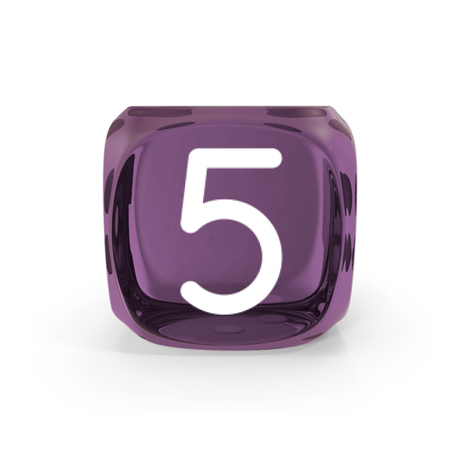 • Peculiaridades en los detalles: Es posible que se presenten ligeras variaciones en los puntos numéricos, grabados o en la pintura final de los detalles de los dados. Algunas variaciones mínimas pueden surgir debido a la manipulación durante el proceso de personalización. También puede observarse un halo, efecto difuminado o rebabas alrededor del grabado (ya sea logotipo, puntos, números o iconos) causado por el calor del láser al interactuar con ciertos materiales del dado. Adicionalmente, pueden aparecer pequeños roces o ralladuras, especialmente visibles en dados con efecto gema, debido a su acabado más brillante y translúcido. La pintura aplicada en los grabados puede presentar desvanecimientos según el color base del dado, y es posible que se observe falta de cobertura, en especial en colores de pintura de tonalidades claras como amarillos, amarillo verdoso o naranjas. En algunos casos, pueden producirse cambios en la disposición de números, logotipos, iconos o textos, que pueden diferir de lo mostrado en el personalizador, debido a ajustes técnicos necesarios en el proceso de producción.