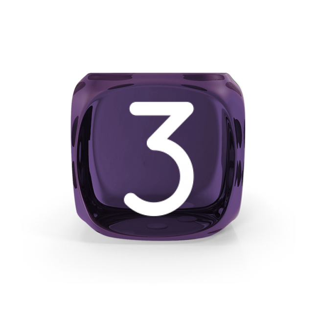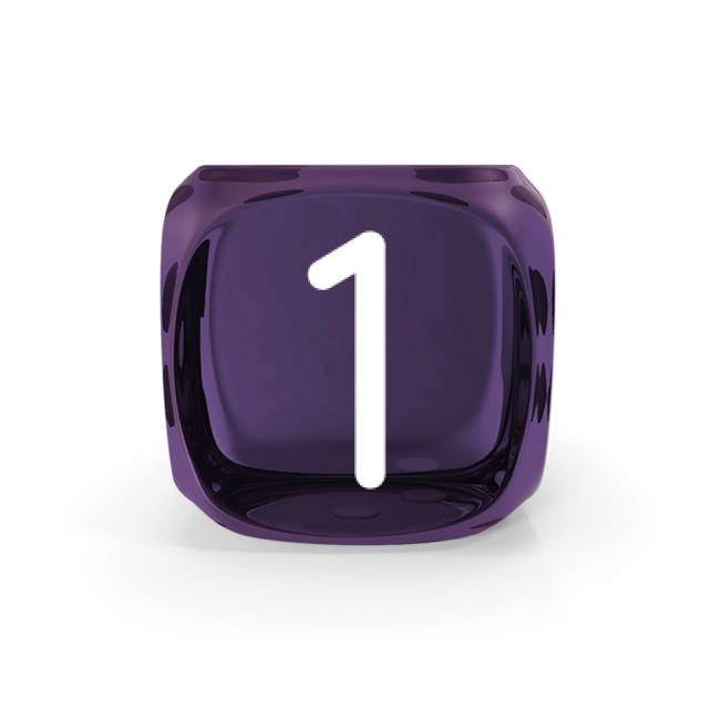 Dado Mokko D6 con números tamaño estándar esquina redondeada efecto gema violeta