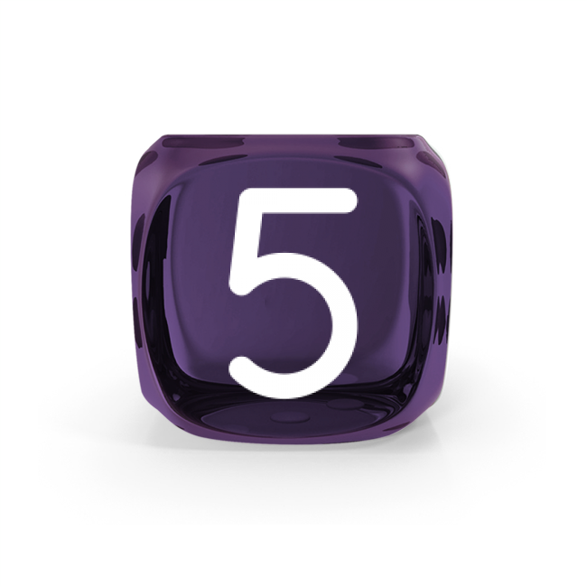 • Peculiaridades en los detalles: Es posible que se presenten ligeras variaciones en los puntos numéricos, grabados o en la pintura final de los detalles de los dados. Algunas variaciones mínimas pueden surgir debido a la manipulación durante el proceso de personalización. También puede observarse un halo, efecto difuminado o rebabas alrededor del grabado (ya sea logotipo, puntos, números o iconos) causado por el calor del láser al interactuar con ciertos materiales del dado. Adicionalmente, pueden aparecer pequeños roces o ralladuras, especialmente visibles en dados con efecto gema, debido a su acabado más brillante y translúcido. La pintura aplicada en los grabados puede presentar desvanecimientos según el color base del dado, y es posible que se observe falta de cobertura, en especial en colores de pintura de tonalidades claras como amarillos, amarillo verdoso o naranjas. En algunos casos, pueden producirse cambios en la disposición de números, logotipos, iconos o textos, que pueden diferir de lo mostrado en el personalizador, debido a ajustes técnicos necesarios en el proceso de producción.