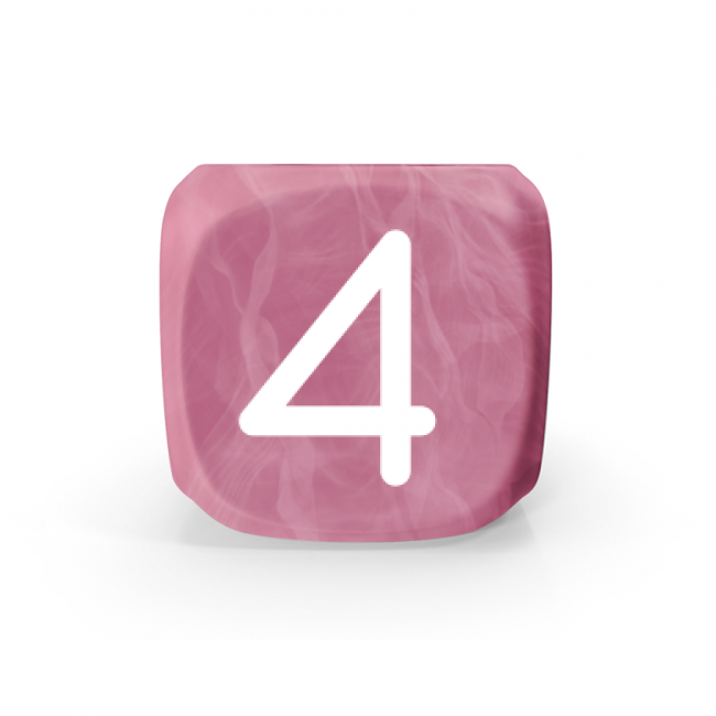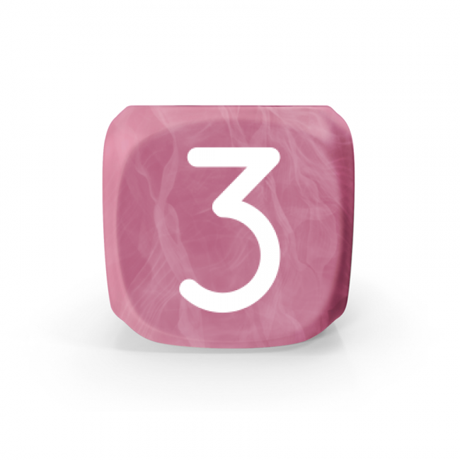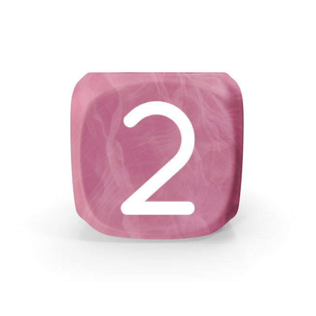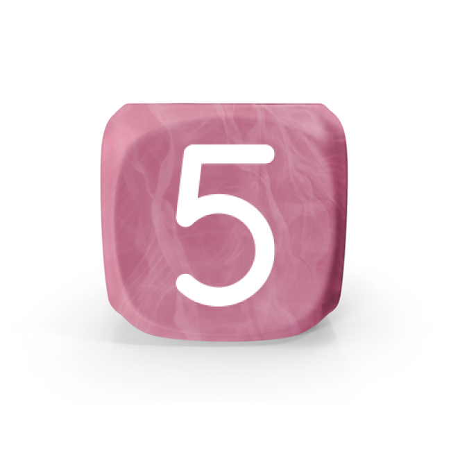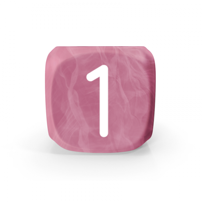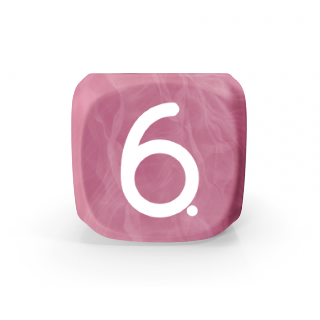 Dado Mokko D6 con números tamaño estándar esquina redondeada efecto mármol rosa