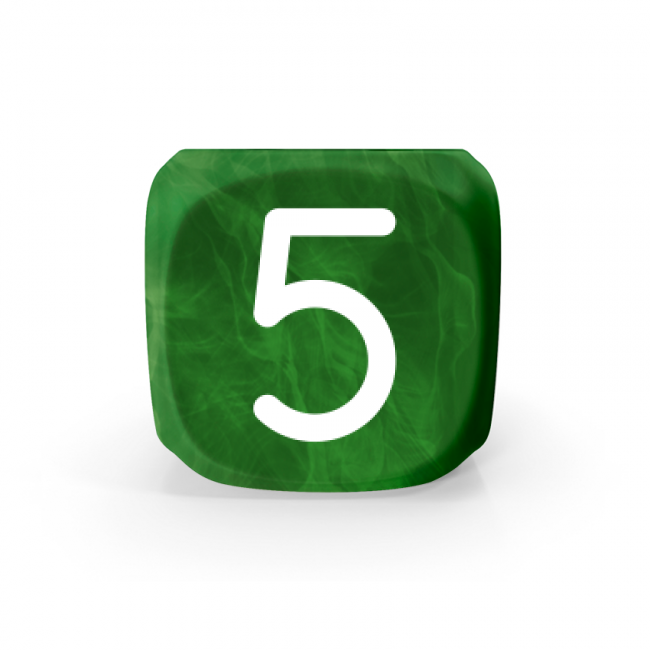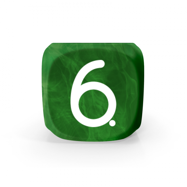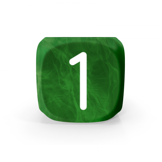 Dado Mokko D6 con números tamaño estándar esquina redondeada efecto mármol verde