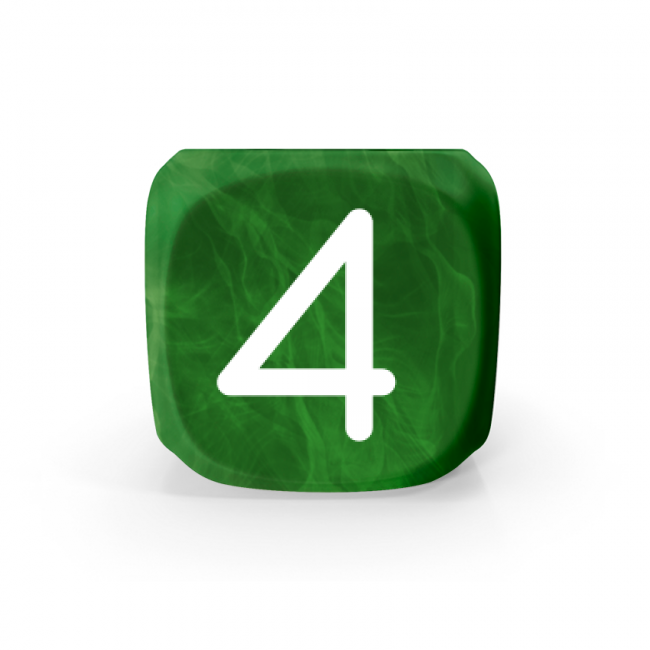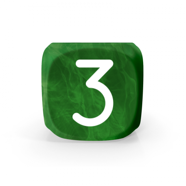 • Peculiaridades en los detalles: Es posible que se presenten ligeras variaciones en los puntos numéricos, grabados o en la pintura final de los detalles de los dados. Algunas variaciones mínimas pueden surgir debido a la manipulación durante el proceso de personalización. También puede observarse un halo, efecto difuminado o rebabas alrededor del grabado (ya sea logotipo, puntos, números o iconos) causado por el calor del láser al interactuar con ciertos materiales del dado. Adicionalmente, pueden aparecer pequeños roces o ralladuras, especialmente visibles en dados con efecto gema, debido a su acabado más brillante y translúcido. La pintura aplicada en los grabados puede presentar desvanecimientos según el color base del dado, y es posible que se observe falta de cobertura, en especial en colores de pintura de tonalidades claras como amarillos, amarillo verdoso o naranjas. En algunos casos, pueden producirse cambios en la disposición de números, logotipos, iconos o textos, que pueden diferir de lo mostrado en el personalizador, debido a ajustes técnicos necesarios en el proceso de producción.