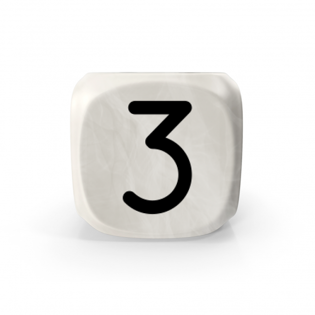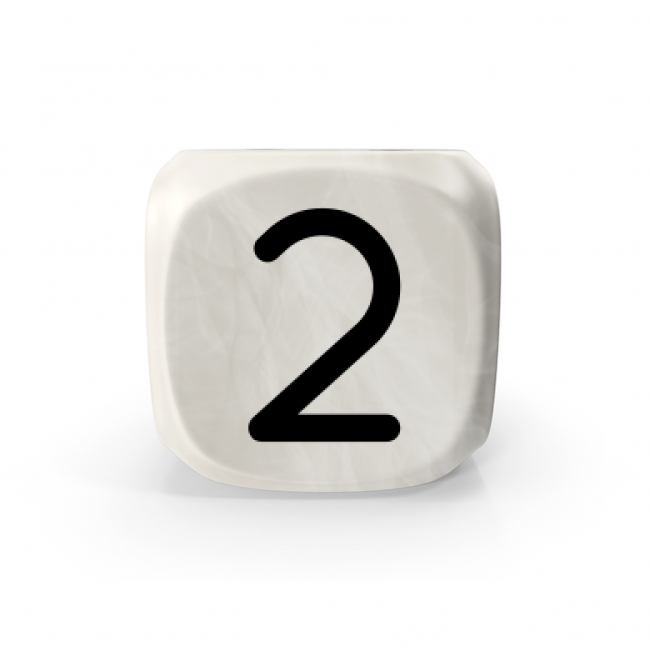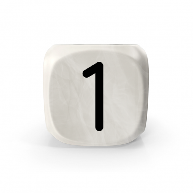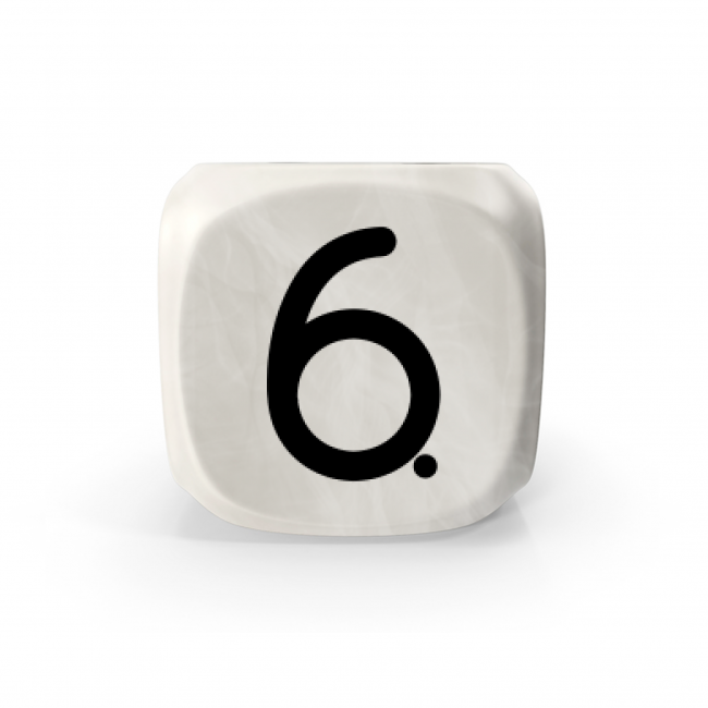 Dado Mokko D6 con números tamaño mini esquina redondeada efecto mármol blanco
