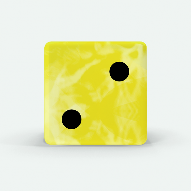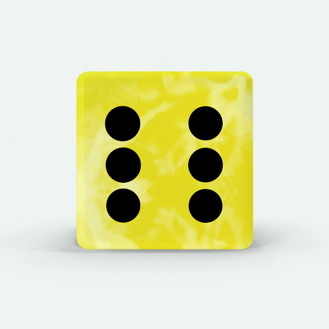 Dado Mokko D6 con puntos tamaño estándar esquina recta efecto mármol amarillo limón
