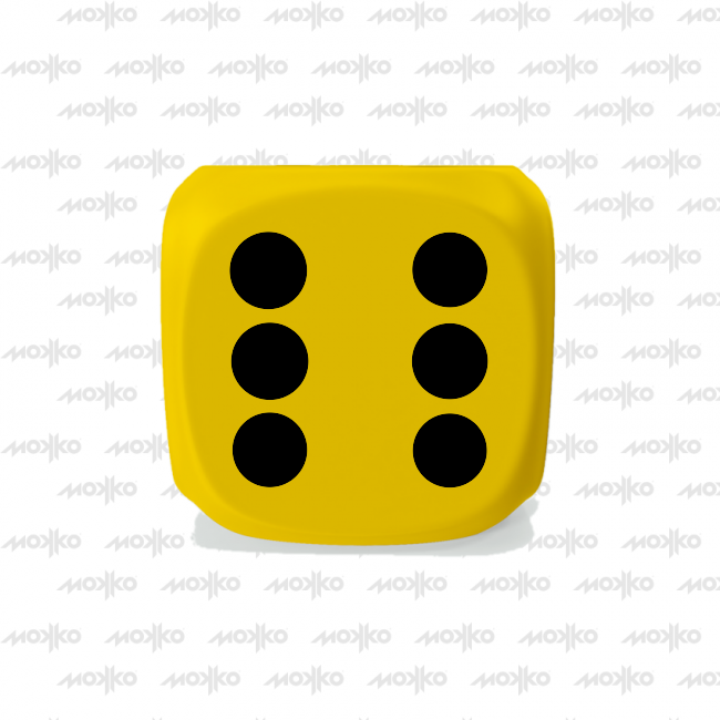 Dado Mokko D6 con puntos tamaño estándar esquina redondeada color sólido amarillo