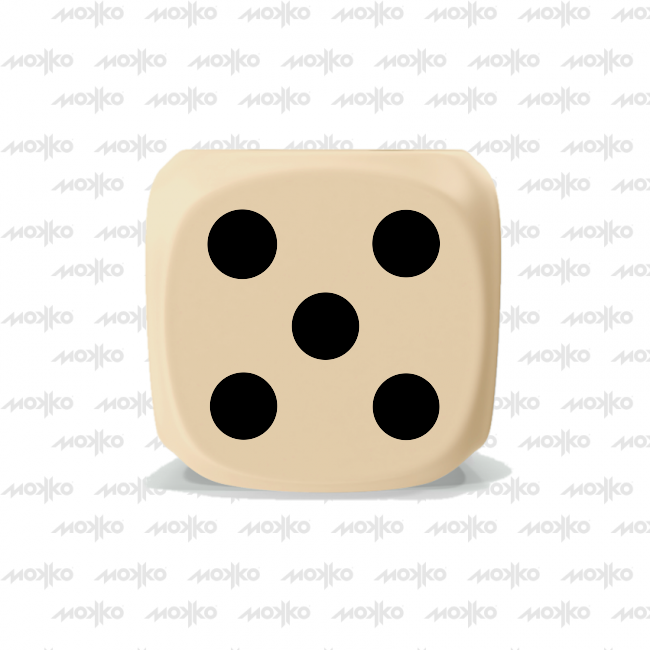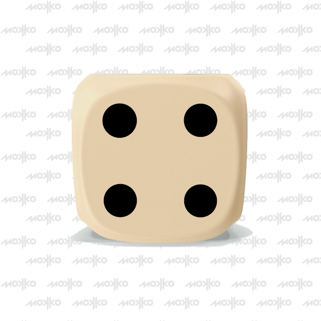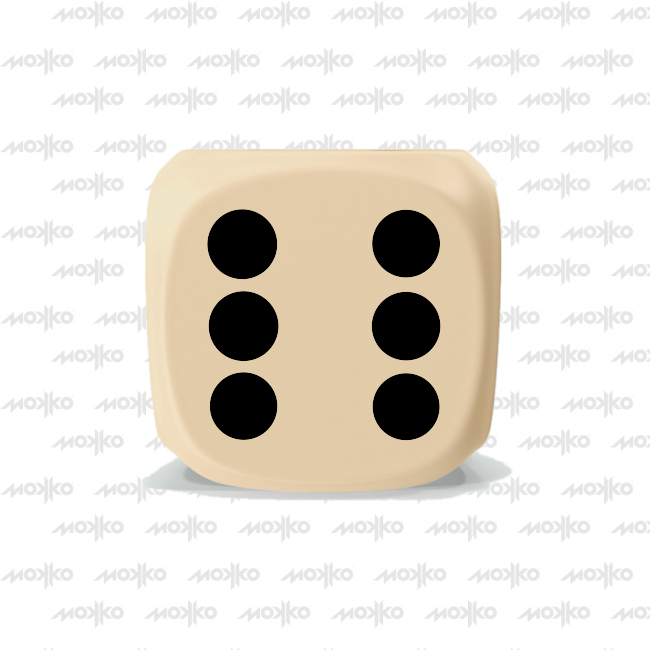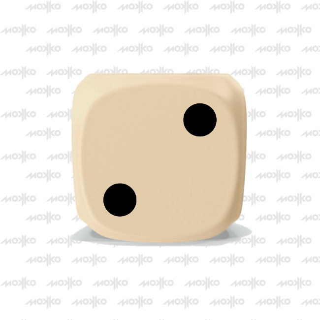 Dado Mokko D6 con puntos tamaño estándar esquina redondeada color sólido marfil