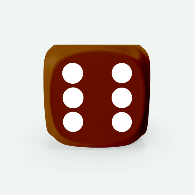Dado Mokko D6 con puntos tamaño estándar esquina redondeada color sólido marrón