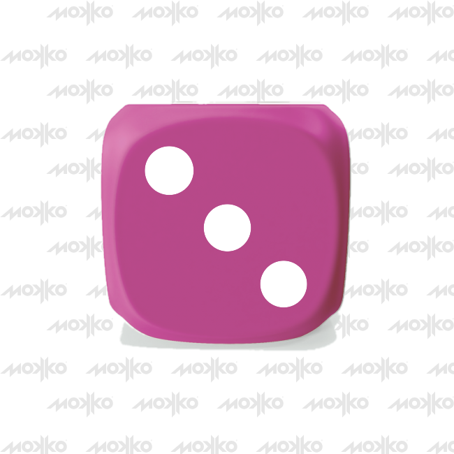 Dado Mokko D6 con puntos tamaño estándar esquina redondeada color sólido rosa