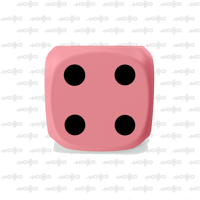 Dado Mokko D6 con puntos tamaño estándar esquina redondeada color sólido rosa suave