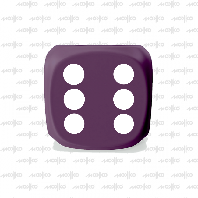 Dado Mokko D6 con puntos tamaño estándar esquina redondeada color sólido violeta