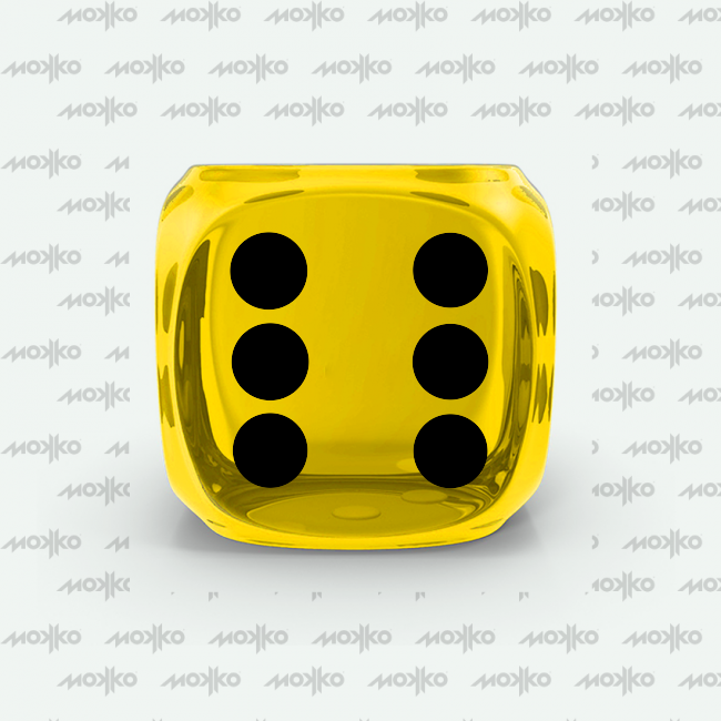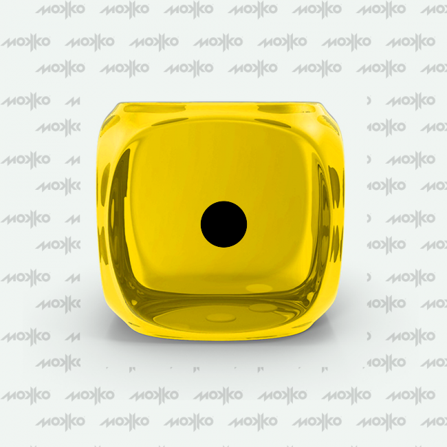 Dado Mokko D6 con puntos tamaño estándar esquina redondeada efecto gema amarillo