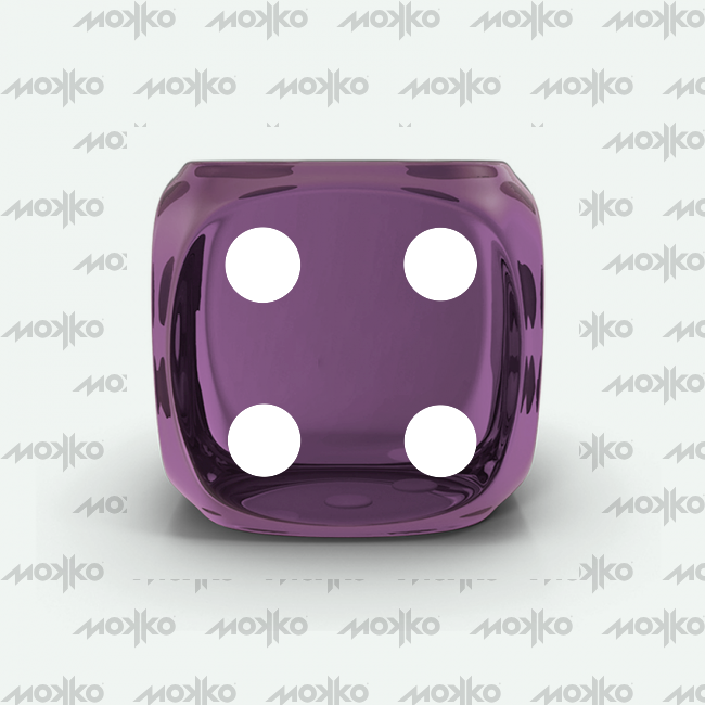 Dado Mokko D6 con puntos tamaño estándar esquina redondeada efecto gema malva