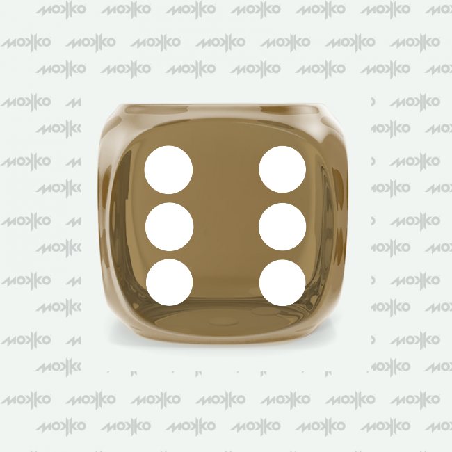 Dado Mokko D6 con puntos tamaño estándar esquina redondeada efecto gema marrón