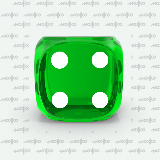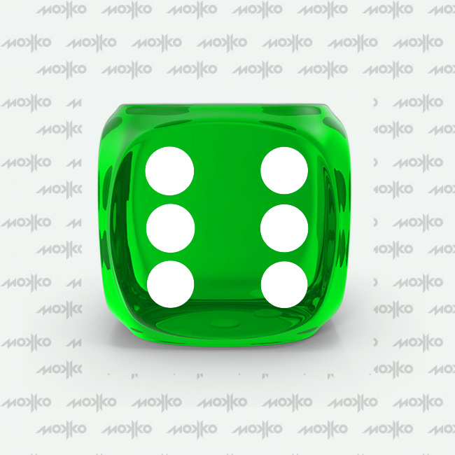 Dado Mokko D6 con puntos tamaño estándar esquina redondeada efecto gema verde
