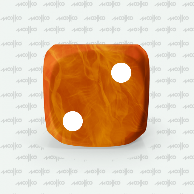 Dado Mokko D6 con puntos tamaño estándar esquina redondeada efecto mármol naranja