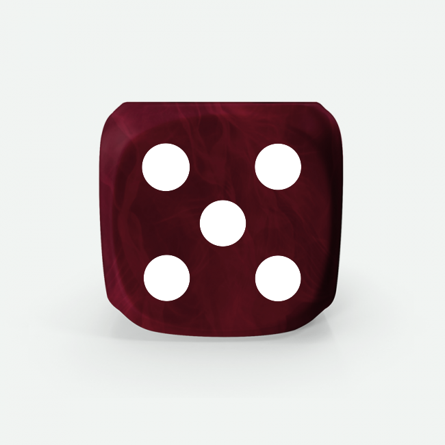 - Peculiaridades en los detalles: Es posible que se presenten ligeras variaciones en los puntos numéricos, grabados o en la pintura final de los detalles de los dados. Algunas variaciones mínimas pueden surgir debido a la manipulación durante el proceso de personalización. También puede observarse un halo, efecto difuminado o rebabas alrededor del grabado (ya sea logotipo, puntos, números o iconos) causado por el calor del láser al interactuar con ciertos materiales del dado. Adicionalmente, pueden aparecer pequeños roces o ralladuras, especialmente visibles en dados con efecto gema, debido a su acabado más brillante y translúcido. La pintura aplicada en los grabados puede presentar desvanecimientos según el color base del dado, y es posible que se observe falta de cobertura, en especial en colores de pintura de tonalidades claras como amarillos, amarillo verdoso o naranjas. En algunos casos, pueden producirse cambios en la disposición de números, logotipos, iconos o textos, que pueden diferir de lo mostrado en el personalizador, debido a ajustes técnicos necesarios en el proceso de producción.