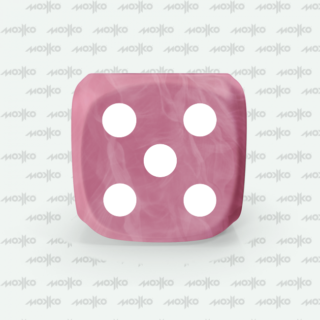 Dado Mokko D6 con puntos tamaño estándar esquina redondeada efecto mármol rosa