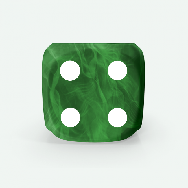 Dado Mokko D6 con puntos tamaño estándar esquina redondeada efecto mármol verde