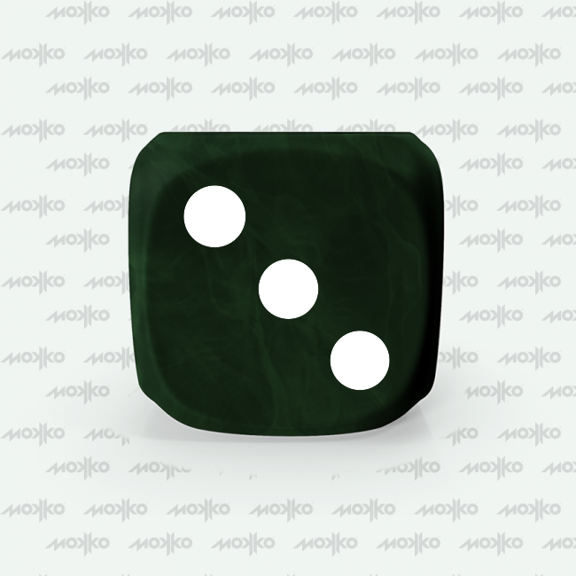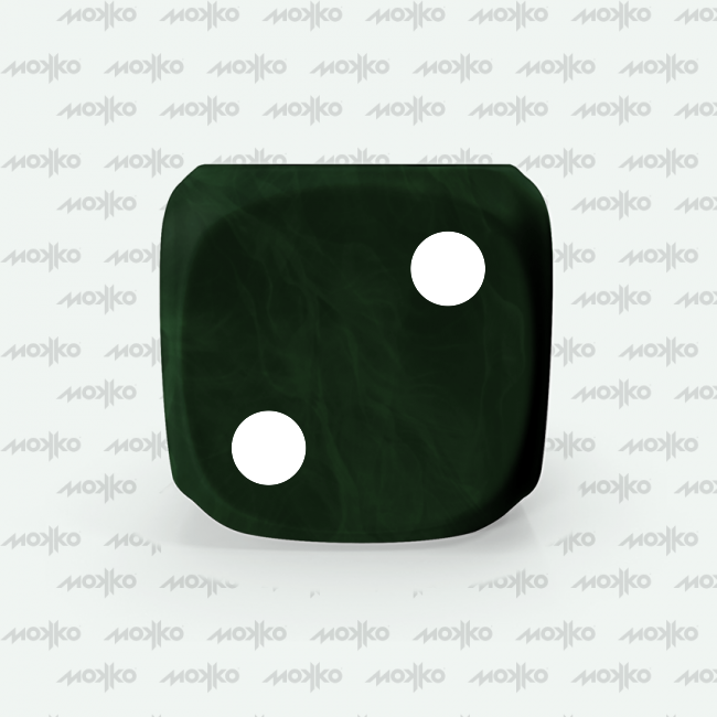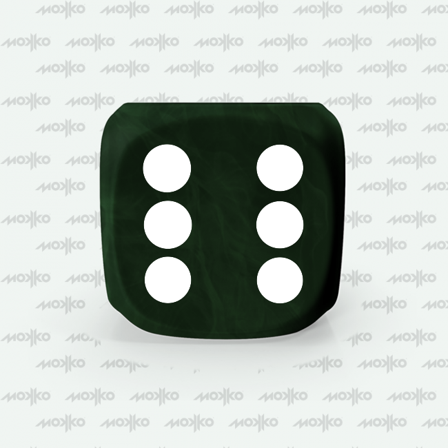 Dado Mokko D6 con puntos tamaño estándar esquina redondeada efecto mármol verde oscuro