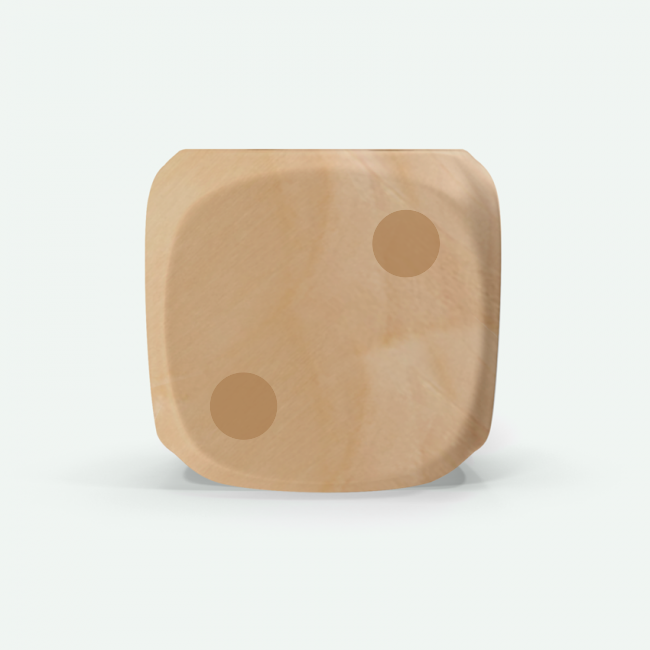 Debido a la temperatura del láser en el proceso de grabado de los dados de madera, el material puede sufrir pequeñas grietas y alteraciones que serán rellenadas con la pintura de los detalles visualizándose un efecto de veteado.