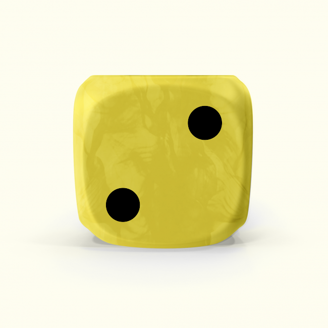 Dado Mokko D6 con puntos tamaño mini esquina redondeada efecto mármol amarillo