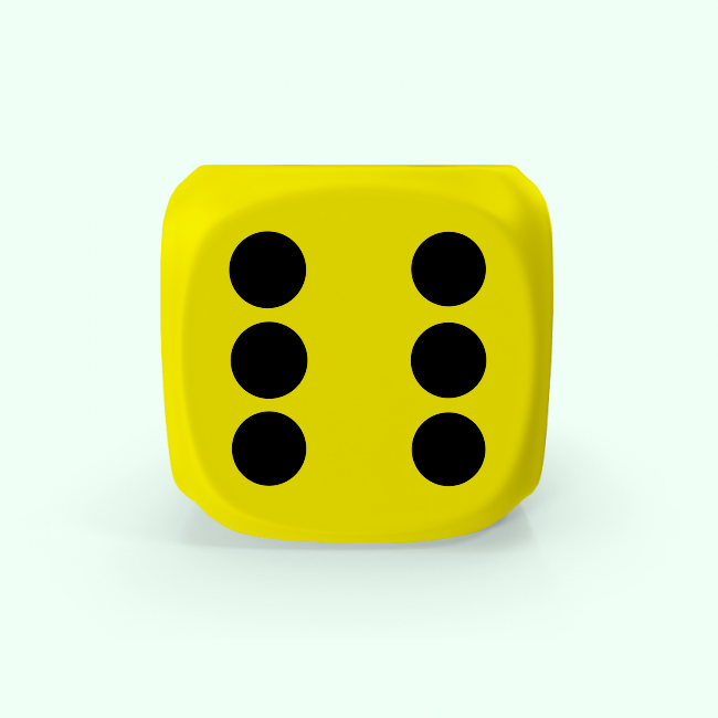 Dado Mokko D6 con puntos tamaño plus esquina redondeada color sólido amarillo limón
