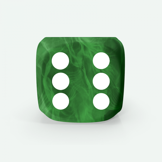 Dado Mokko D6 con puntos tamaño estándar esquina redondeada efecto mármol verde