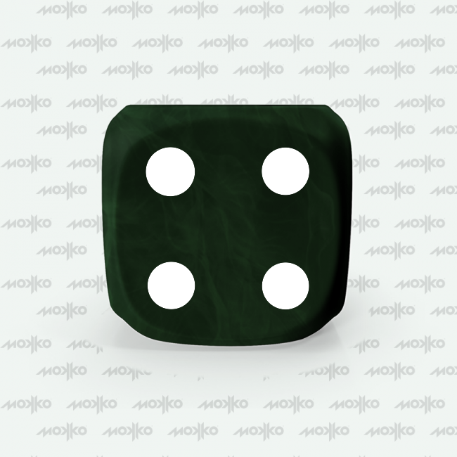 Dado Mokko D6 con puntos tamaño estándar esquina redondeada efecto mármol verde oscuro